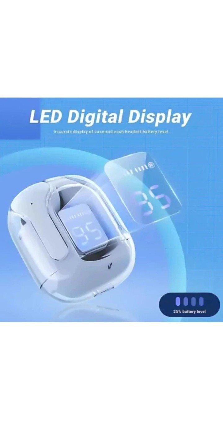 OWDIO Ultrapods Wireless Earbuds Comes with transperant case Digital Display 5.3 Bluetooth Headset (BLUE, True Wireless)